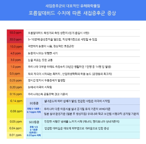 새집에서 발생하는 유해 화학 물질(포름알데히드, 휘발성 유기 화합물)은 물론,