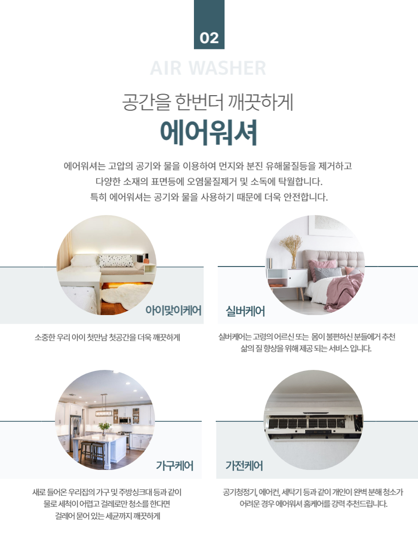쾌적하고 위생적인 주거 환경을 꾸준히 유지하고 싶은 고객(맞벌이 부부, 영유아/반려동물 가구, 실버 세대, 상업/사무실 등 )서비스