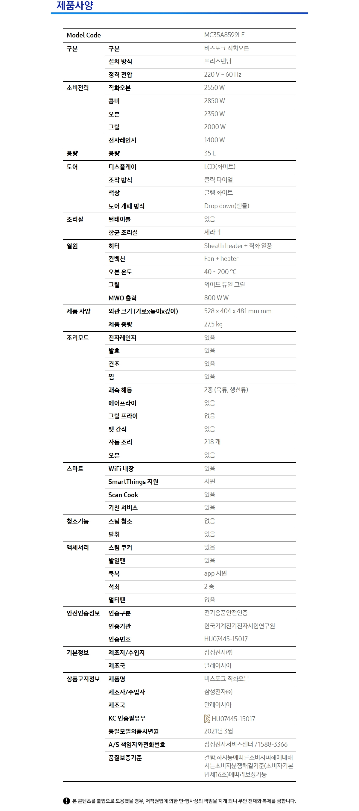 Bespoke 큐커 오븐 35L (직화오븐) 글램 화이트