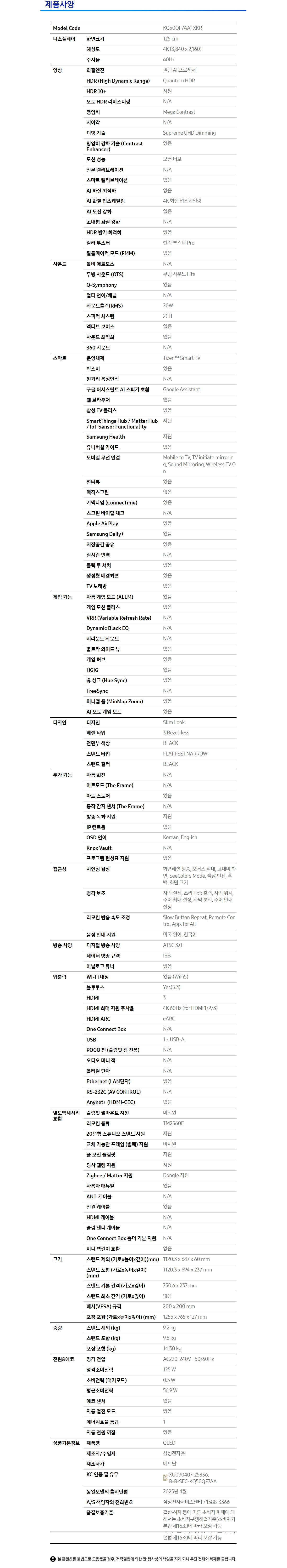 KQ50QF7AAFXKR TV