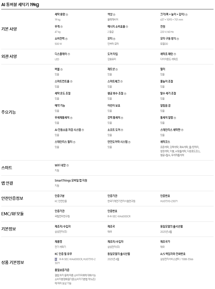 AI 통버블 세탁기 19kg 블랙캐비어