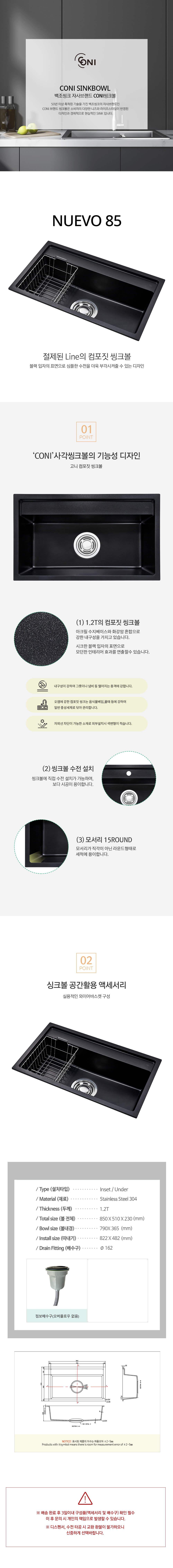 백조 코니 사각 씽크볼+와이어바스켓+점보 먹배수구 NUEVO850