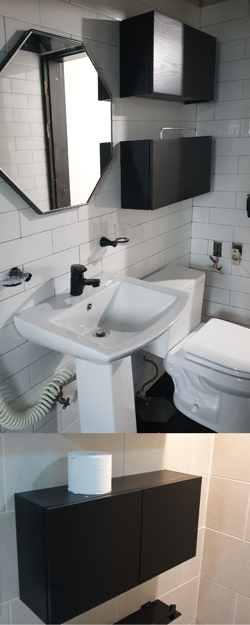 욕실 플랩 수납장 블랙 수건장 상단장 하단장 세트