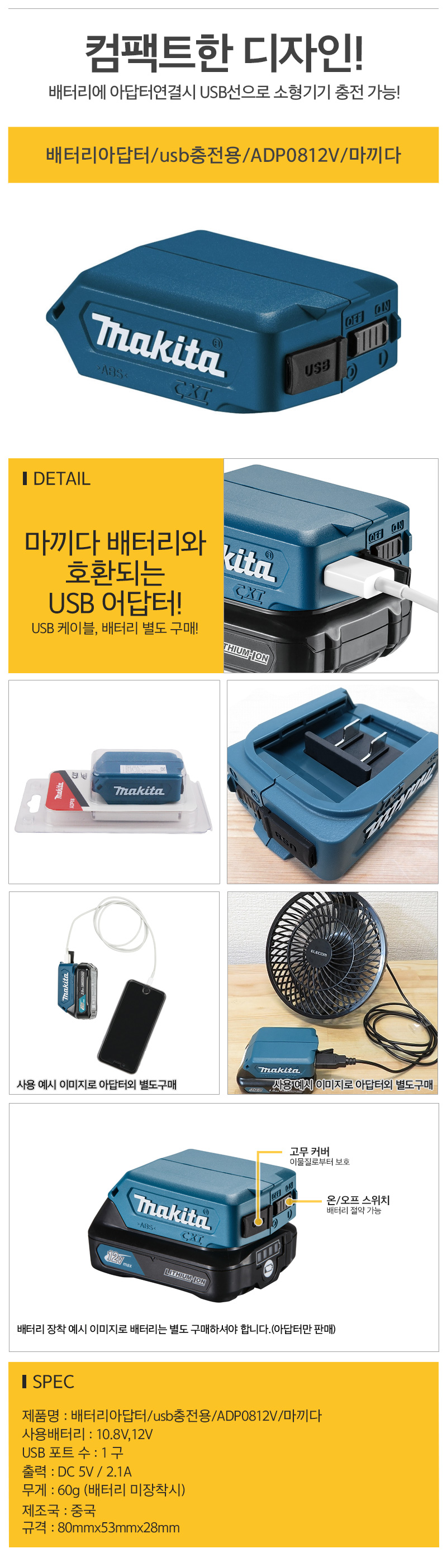 배터리아답터/usb충전용/ADP0812V/마끼다