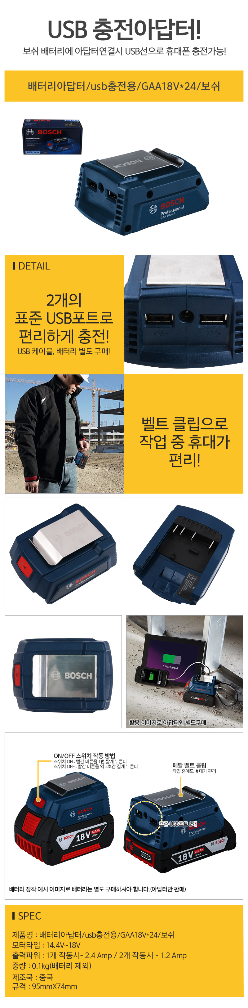 배터리아답터/usb충전용/GAA18V*24/보쉬