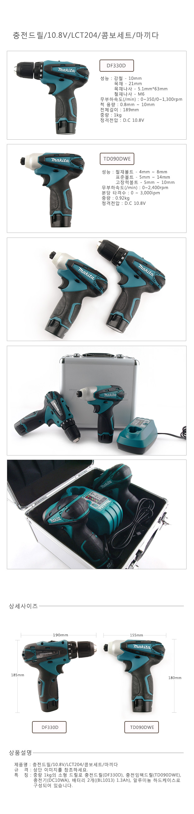 충전드릴/10.8V/LCT204/콤보세트/마끼다