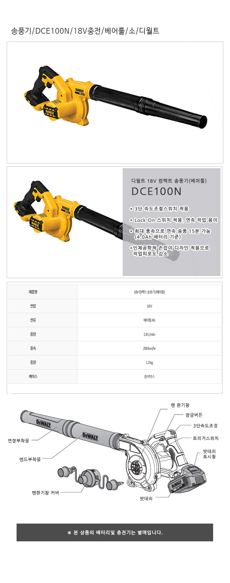 송풍기/DCE100N/18V충천/베어툴/소